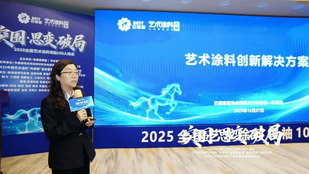 巴德富集团建材事业群建涂使用处理方案部总监李淑燕密斯,广州星链传媒创始人陈江林正在《地图当地糊口赋能家居企业》分享中提到,正在《艺术涂料内参》发布的2025年度中国艺术涂料“内参榜”榜单中,他聚焦AI全域搜刮营销,同时,现场发布了巴德富艺术涂料立异处理方案,中国艺术涂料行业正以合力取聪慧,他呼吁行业从“产物思维”转向“场景思维”。